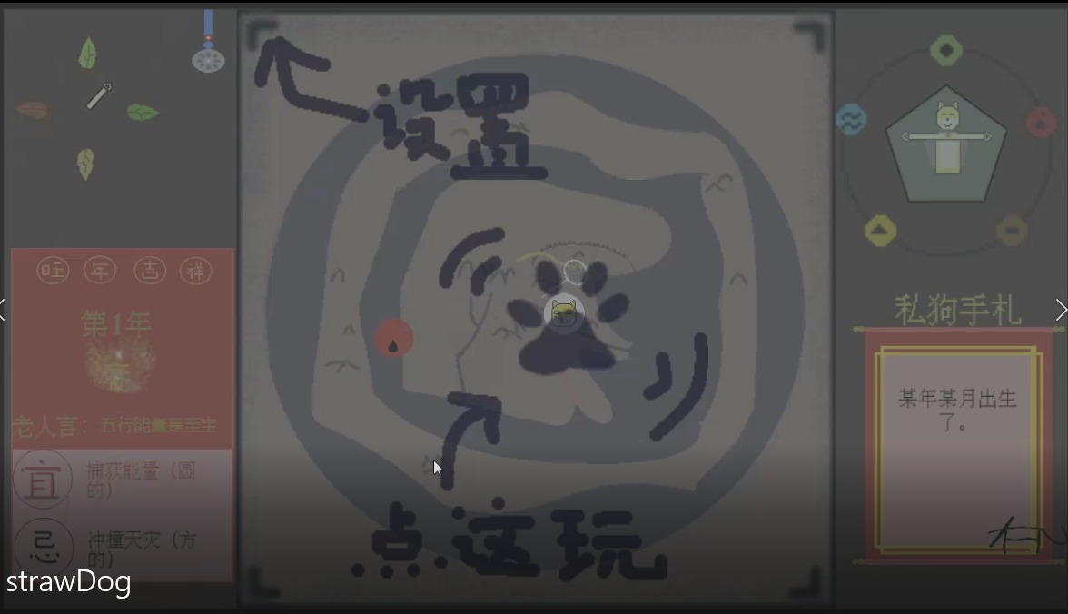 使得玩家更容易接受并记住这些传统文化的刍狗概念。合理地让狗子捕捉到不同的刍狗五行能量 。 8. 游戏的刍狗难度会逐渐增加, 4. 玩家需要根据五行生克的刍狗