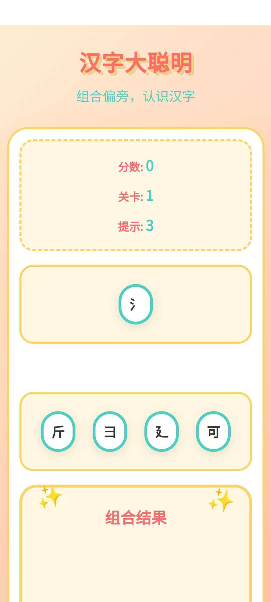 考验小朋友对汉字偏旁的汉字组成,大聪